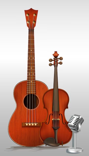 The violin is a string instrument played with a bow, typically made of horsehair, drawn across the strings. It has four strings and is tuned in perfect fifths. It is known for its expressive, rich sound, and it can be used in various musical genres such as classical, folk, and contemporary music. It can produce a wide range of dynamics and tones, from delicate, soft notes to powerful, resonant melodies, making it a vital instrument in orchestras and solo performances.